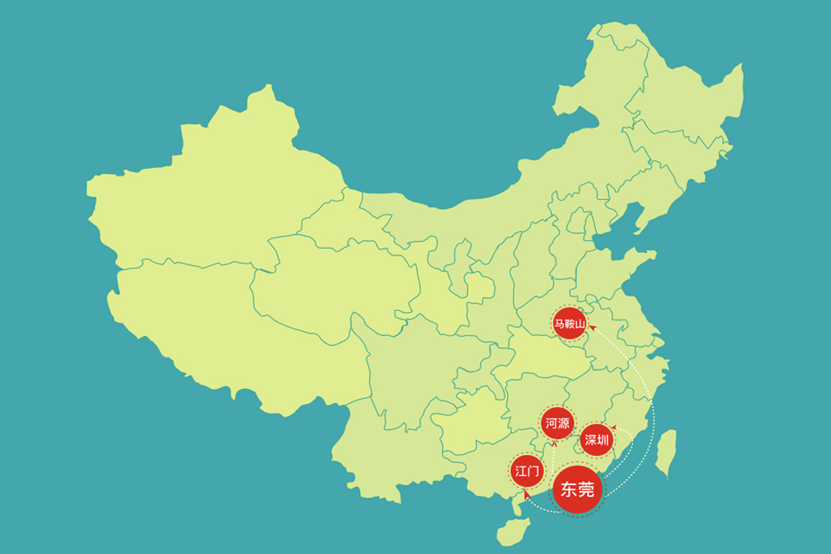 集團擁有東莞、江門、河源、深圳、馬鞍山等5個生產基地,公司的生產、倉庫、辦公及宿舍等占地面積超過200畝,從業(yè)人員達1000余人。